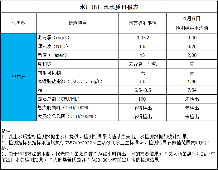 水廠出廠水水質(zhì)日報表(2025-4-6)