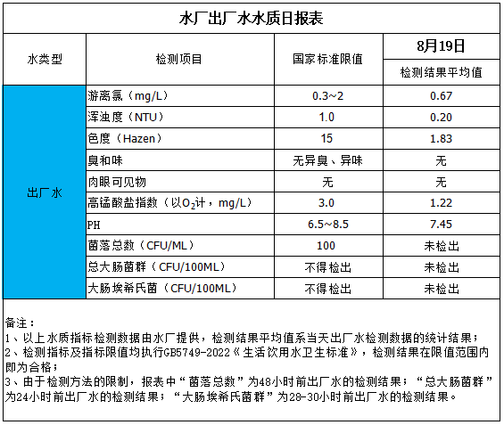 水廠出廠水水質(zhì)日報表(2025-8-19)