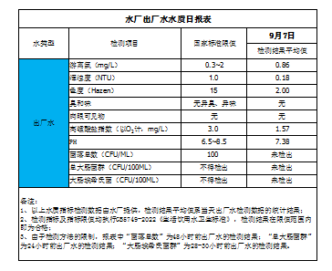 水廠出廠水水質日報表(2023-9-7)