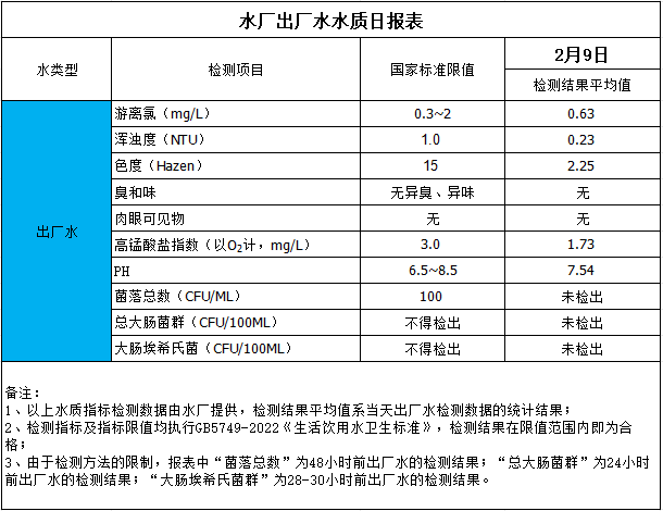 水廠出廠水水質日報表(2024-2-9)